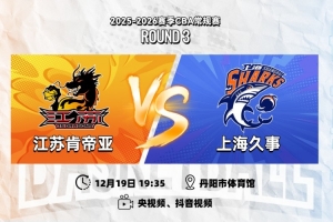 12月19日19:35,2025-26賽季CBA常規(guī)賽第三輪,江蘇肯帝亞將坐鎮(zhèn)主場丹陽市體育館,迎戰(zhàn)勁旅上海久事。