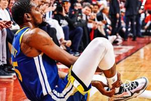 2019年NBA總決賽,效力于勇士的KD正與猛龍爭奪總冠軍。在之前的西部半決賽對陣火箭的系列賽中,杜蘭特小腿拉傷,并因此缺席了接下來的西部決賽和總決賽的前四場比賽。勇士陷入絕境,在總決賽中以1-3落后。外界的巨大壓力和球隊的危急形勢,共同促成了他G5的復出。但在比賽第二節(jié)杜蘭特無對抗倒地提前退賽。賽后核磁共振檢查結(jié)果確認,杜蘭特遭遇了右腳跟腱斷裂,賽季報銷。