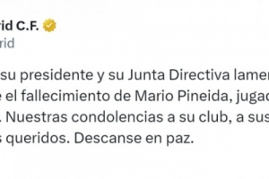 皇馬官方社媒寫道:“皇家馬德里俱樂部、主席及董事會對瓜亞基爾巴塞羅那俱樂部球員馬里奧·皮尼達的逝世深表哀悼,謹向其俱樂部、家人及所有親友致以最深切的慰問。愿逝者安息?!?/p>