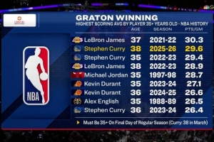體育資訊12月19日訊 今天,勇士對(duì)陣太陽的比賽正在進(jìn)行中,轉(zhuǎn)播方曬出了NBA歷史上,至少35歲(常規(guī)賽最后一個(gè)比賽日必須達(dá)到35歲)單賽季場(chǎng)均得分榜前9,具體如下: