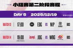 體育資訊12月19日訊 2025德瑪西亞杯第二階段比賽將在今日開始,首場17點EDG vs NIP,次場JDG vs WBG。