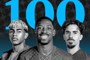 91-萊奧(AC米蘭)、92-赫伊森(皇馬)、93-格瓦迪奧爾(曼城)、94-諾伊爾(拜仁)、95-格林伍德(馬賽)、96-范德芬(熱刺)、97-安東尼(貝蒂斯)、98-阿諾德(皇馬)、99-迪馬爾科(國(guó)米)、100-格列茲曼(馬競(jìng))