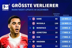 體育資訊12月19日訊 德國(guó)轉(zhuǎn)會(huì)市場(chǎng)列出了德甲身價(jià)下跌榜,凱恩、穆西亞拉身價(jià)下降1000萬(wàn)歐居首。