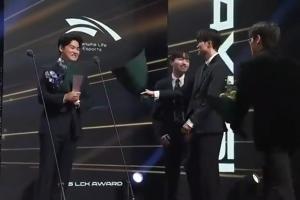 在韓網(wǎng)的一段視頻中,在Gumayusi當(dāng)選年度最佳AD之前,Keria和Oner就已經(jīng)在討論要上去送花的事情了,隨后Faker點頭才把身邊的花拿過來準(zhǔn)備上去送給Gumayusi。