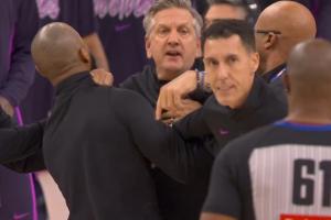 體育資訊12月20日訊 雷霆與森林狼比賽開場(chǎng)剛打到6分19秒,芬奇因?yàn)椴粷M判罰怒懟裁判被驅(qū)逐。