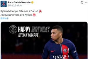 體育資訊12月20日訊 今天是法國前鋒姆巴佩27歲生日,他的老東家巴黎圣日耳曼在社媒為姆巴佩送上生日祝福。