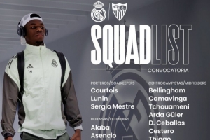 體育資訊12月20日訊 北京時間12月21日凌晨4:00,2025-26賽季西甲聯(lián)賽第17輪,皇馬將在伯納烏球場迎戰(zhàn)塞維利亞。賽前,皇馬官方公布球隊(duì)本場大名單,巴爾韋德缺席,阿拉巴、門迪和卡馬文加在列。