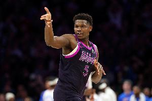 此役,愛(ài)德華茲出戰(zhàn)40分鐘,20投9中,三分球6中3,罰球6中5,得到26分12籃板3助攻3搶斷2封蓋。