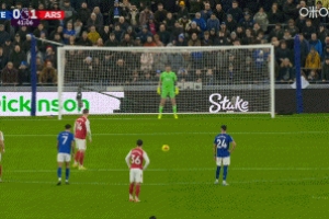 這個點球來源于埃弗頓后衛(wèi)奧布萊恩禁區(qū)內(nèi)低級的手球失誤送點,而約克雷斯罰進點球后,場邊埃弗頓主帥莫耶斯也是低頭無奈扶額。