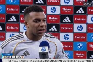 在追平C羅紀錄后,姆巴佩做出了C羅標志性的“SIU”慶祝動作。姆巴佩賽后接受了皇馬TV的采訪。