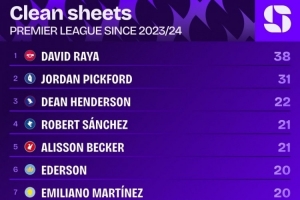 本場(chǎng)過(guò)后,從23-24賽季算起(注:拉亞在2023年夏天加盟阿森納),拉亞在英超比賽中已38次零封對(duì)手,該統(tǒng)計(jì)數(shù)據(jù)排在同期英超各隊(duì)門(mén)將榜首(排在第2、第3位的分別是皮克福德,迪恩-亨德森)。