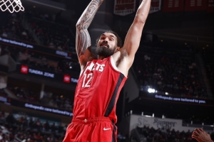 此役,亞當(dāng)斯替補出戰(zhàn)25分14秒,投籃4中0,罰球2中1,得到1分12籃板,包括5個進攻籃板。