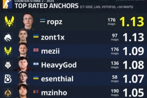 體育資訊12月21日訊 根據(jù)由statsmeister1與NER0cs基于HLTV數(shù)據(jù)聯(lián)合發(fā)布的“COUNTER-STRIKE 2 - 2025”賽季綜合統(tǒng)計(jì),在嚴(yán)格限定為 CT方(防守方)、線(xiàn)下賽事(LAN)、對(duì)陣世界排名前20戰(zhàn)隊(duì)、且出場(chǎng)地圖數(shù)超過(guò)50張 的 頂級(jí)主防者(TOP RATED ANCHORS) 評(píng)分榜單中,選手 ropz 以 1.13 的評(píng)分位列榜首;