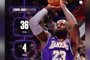 體育資訊12月21日訊 今日,湖人88-103客場不敵快船。本場比賽,湖人前鋒詹姆斯上場37分鐘,28投15中得到36分4籃板3助攻。