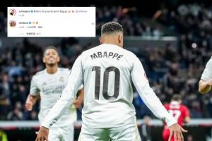 賽后姆巴佩曬出自己進球后模仿C羅“Siu”慶祝的照片,得到了C羅本人的回復(fù)。