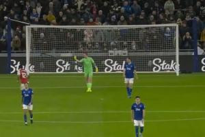 在約克雷斯罰進(jìn)點(diǎn)球后,埃弗頓門(mén)將皮克福德很懊惱。撿起皮球怒踢一腳險(xiǎn)些踢到薩卡,隨后還朝阿森納球員比中指。