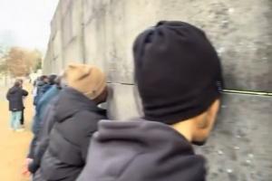 法國(guó)杯1/32決賽,法丙球隊(duì)布爾格主場(chǎng)0-6馬賽。球迷曬出視頻,球場(chǎng)外一排球迷扒墻縫看球。