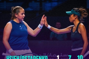 體育資訊11月2日訊 WTA利雅得年終總決賽雙打納芙拉蒂洛娃組,6號(hào)種子謝淑薇/奧斯塔彭科以1-6 7-5 10-5逆轉(zhuǎn)4號(hào)種子庫德梅托娃/梅爾滕斯,取得小組賽首勝。