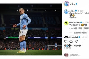 哈蘭德社媒曬出進(jìn)球后機(jī)器人舞蹈慶祝動(dòng)作的照片,調(diào)侃配文:“看來(lái)是藏不住了????”