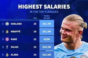 體育資訊11月3日訊 德國轉(zhuǎn)會市場統(tǒng)計(jì)了五大聯(lián)賽球員的年薪,并列出榜單,哈蘭德3170萬歐居首。