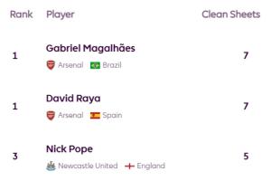 體育資訊11月03日訊 英超戰(zhàn)至第10輪,官方統(tǒng)計(jì)的零封榜上,阿森納門(mén)將拉亞和后衛(wèi)加布里埃爾以7次零封霸榜。
