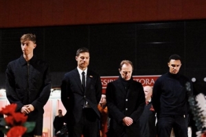 體育資訊11月4日訊 北京時(shí)間周三凌晨的歐冠聯(lián)賽階段第4輪比賽,皇馬將在安菲爾德挑戰(zhàn)利物浦。本場比賽之前,皇馬主帥阿隆索、后衛(wèi)赫伊森和阿諾德、公關(guān)總監(jiān)布特拉格諾一行來到若塔紀(jì)念碑前,阿隆索獻(xiàn)上鮮花向這名7月因車禍不幸離世的利物浦前鋒表達(dá)敬意。