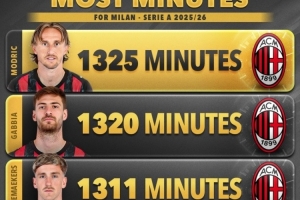 本賽季米蘭球員意甲出場時間榜:40歲莫德里奇居首,加比亞次席