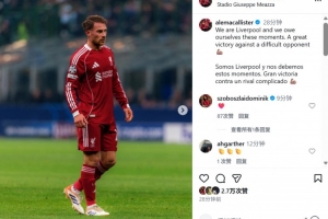 麥卡利斯特社媒鼓勵球隊:我們是利物浦,值得這樣的勝利