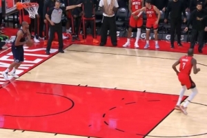 風(fēng)卷殘?jiān)疲∷_格斯高速反擊 對抗防守拉桿上籃打成2+1