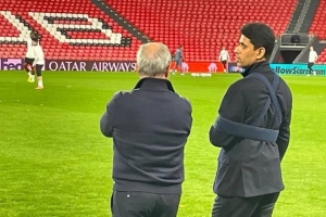 帶傷督戰(zhàn)!巴黎圣日耳曼主席納賽爾手打石膏,觀看球隊(duì)訓(xùn)練