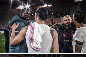 曼市往事…博格巴與薩內(nèi)歐冠相遇賽后寒暄,兩人曾在曼市對(duì)決多年